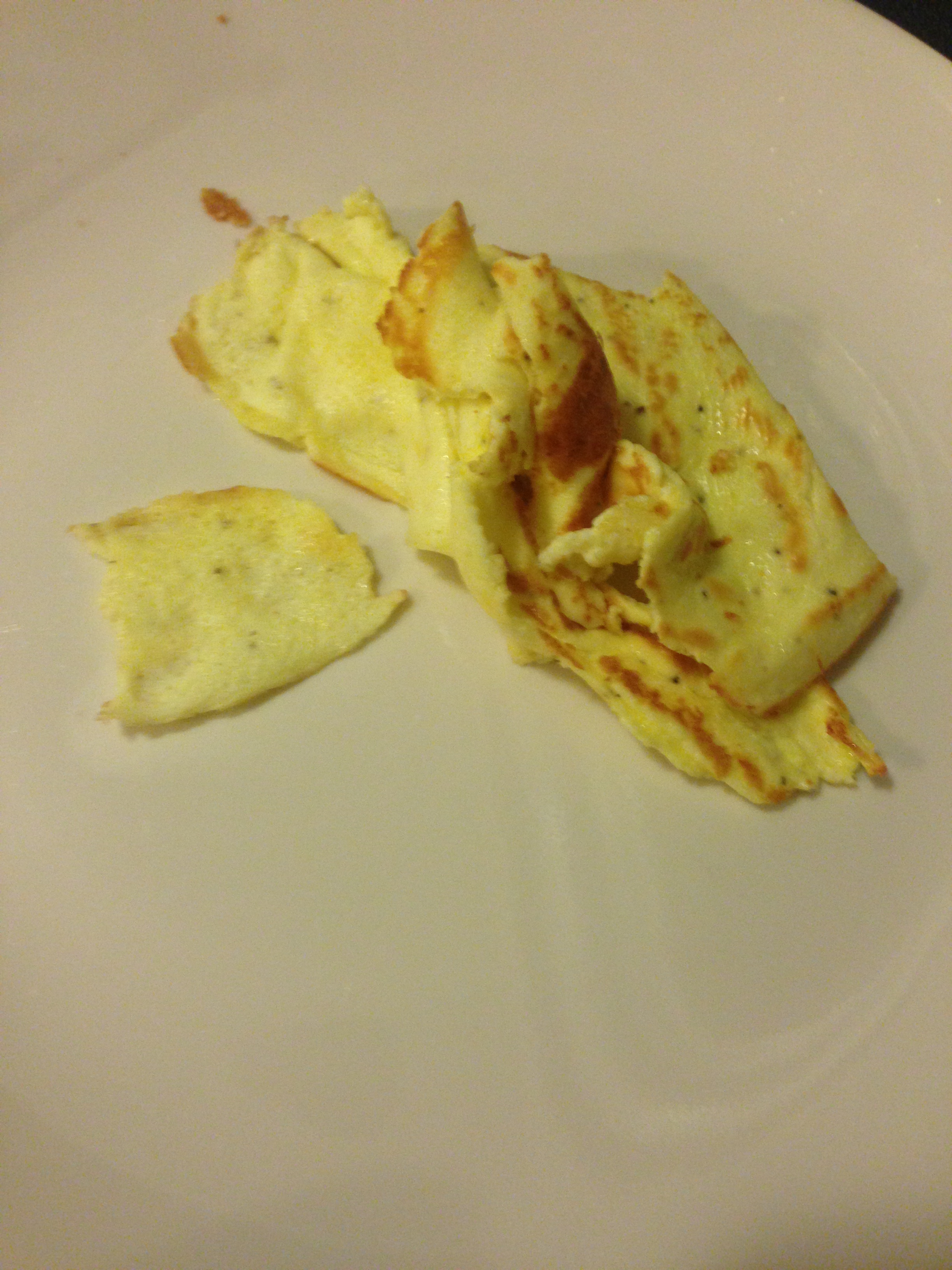 Pour a very thin layer of the egg batter in the pan, and tilt the pan to spread it around into a circle. Cook until it’s set, and then flip and cook the other side long enough to brown it a bit.